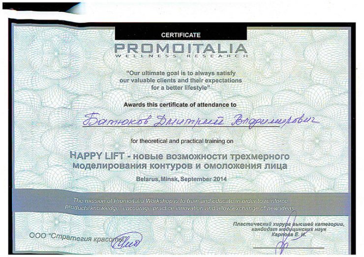 Квалификация сотрудников подтверждена дипломами, сертификатами, а также сотнями пластических операций. Постоянное повышение профессионального уровня, освоение новых методик, внедрение прогрессивных методов позволяют решать самые сложные проблемы пациентов.